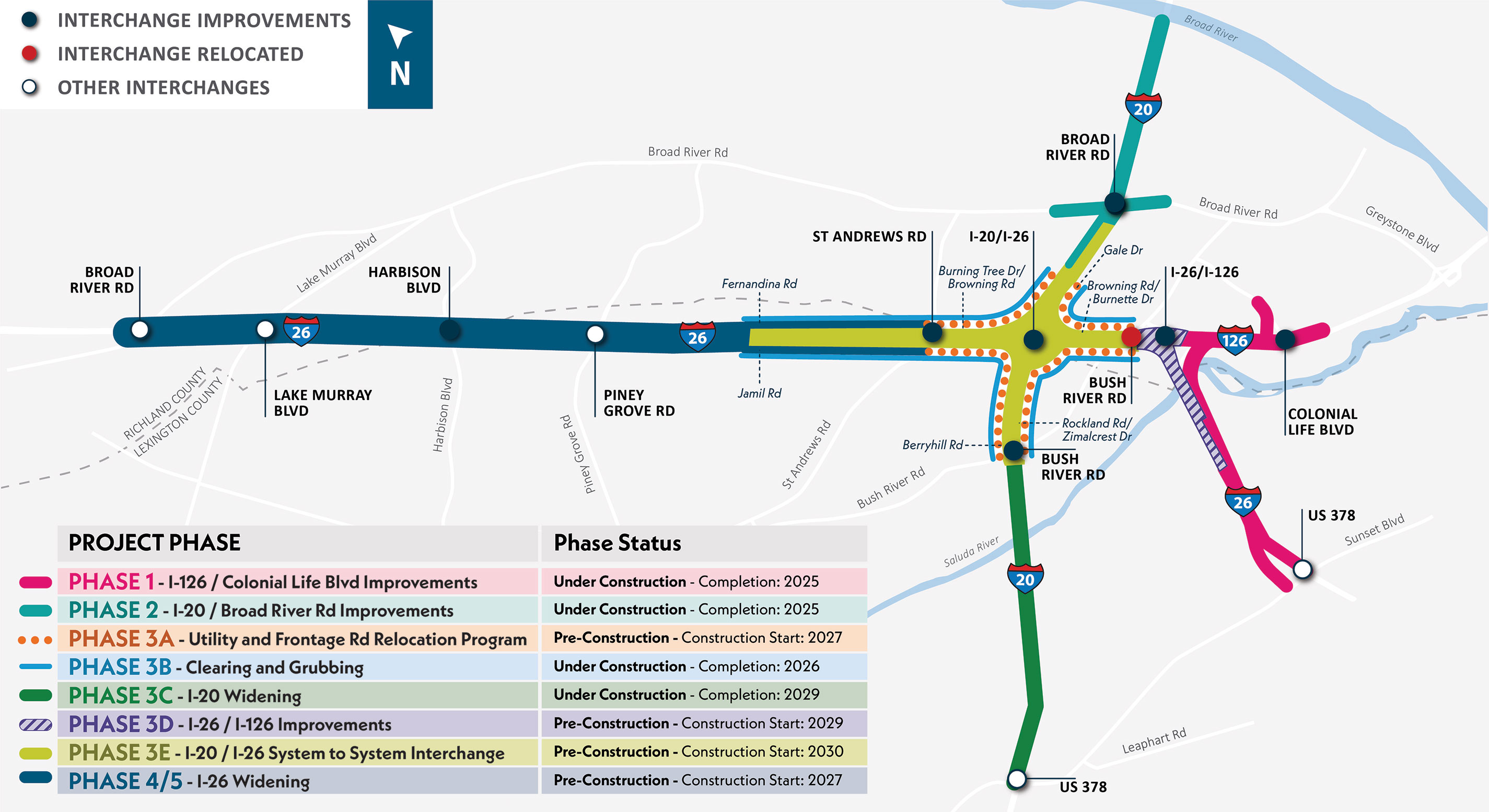 Relocation of the I-26 Bush River Road Interchange to a new full-access interchange at Colonial Life Boulevard at I-126.